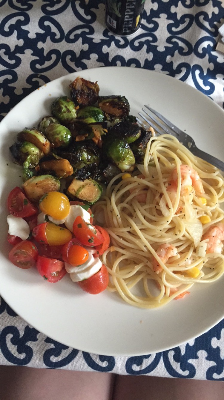 IMG_3611 Previous Next Published September 15, 2015 at 750 × 1334 in Drool Caprese salad, shrimp pasta, and brussels sprouts.